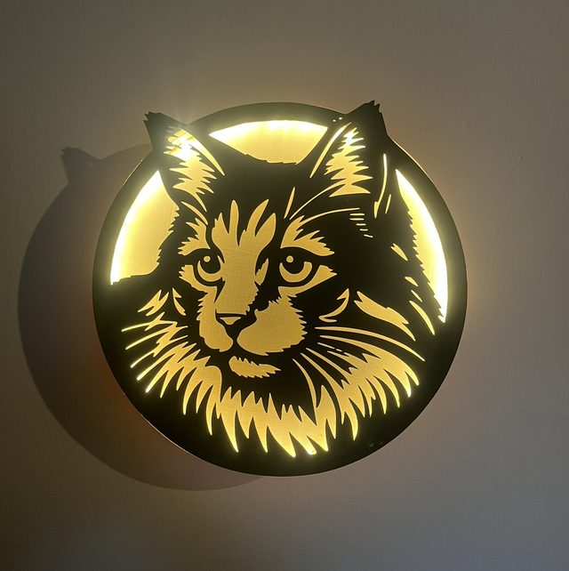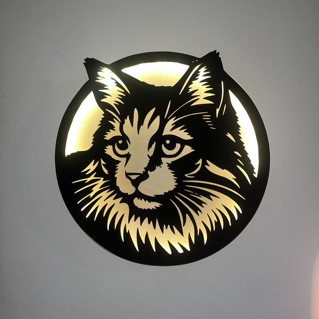 Tableau lumineux chat en bois recyclé – Décoration murale LED upcycling